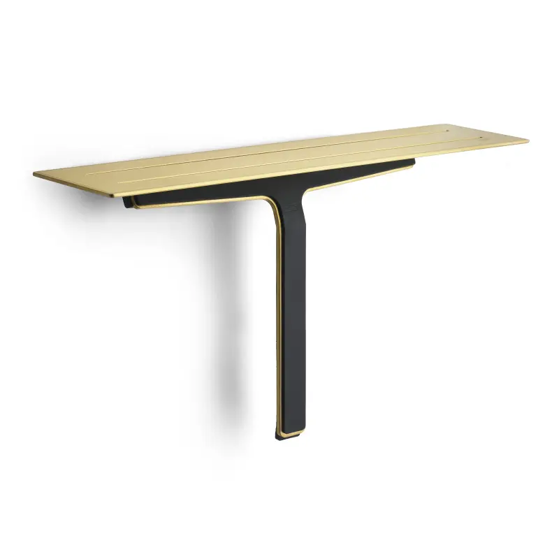 Sæbehylden er produceret i en forstærket stålplade med spor, der dræner vandet af pladen. Rundt i kanten er lasergraveret en tynd ”antislip” barriere, som hjælper med at shampoo og andre badprodukter ikke glider af hylden, når den er våd.