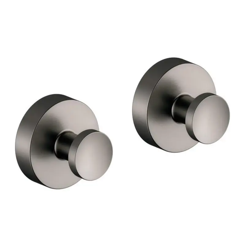 Skab visuel ro og funktionel elegance på badeværelset med Zen håndklædekroge med roset i børstet grafitgrå. Dette sæt med to kroge forener moderne design med praktisk anvendelighed, og sætter prikken over i’et i en stilren indretning.