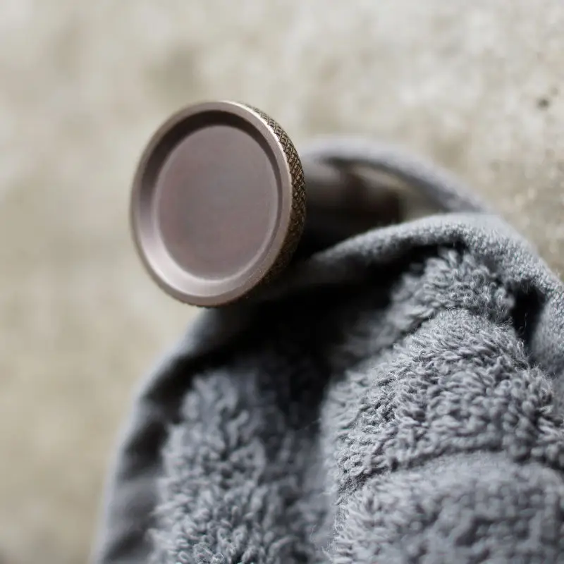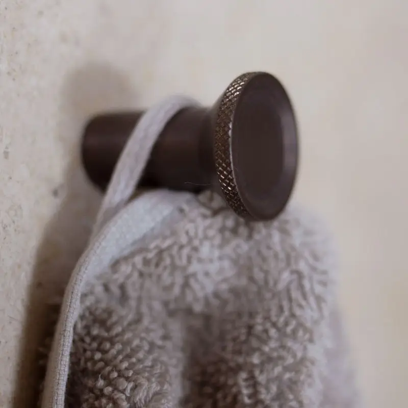 Toni Copenhagen Enkeltkrog Flat i Massiv bruneret messing kombinerer funktionalitet og eksklusiv æstetik. Krogen er udført med et fladt hoved og en smukt riflet overflade, der både fremhæver designet og giver et sikkert greb i daglig brug. Den er fremstillet i massiv messing og efterfølgende håndbruneret, hvilket gør hver enkelt krog unik. Perfekt til ophæng af håndklæder, badekåber og småting i badeværelset.