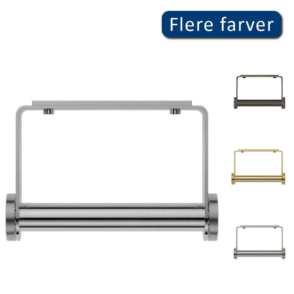 Toni Copenhagen Toiletrulleholder, lukket i Krom er en stilfuld og funktionel detalje til badeværelset. Den lukkede ramme indrammer toiletrullen elegant, mens de diamantskårne, teksturerede endestykker tilfører både æstetik og praktisk anvendelighed. Endestykkerne kan let afskrues i hånden, hvilket gør udskiftningen af rullen nem og intuitiv.