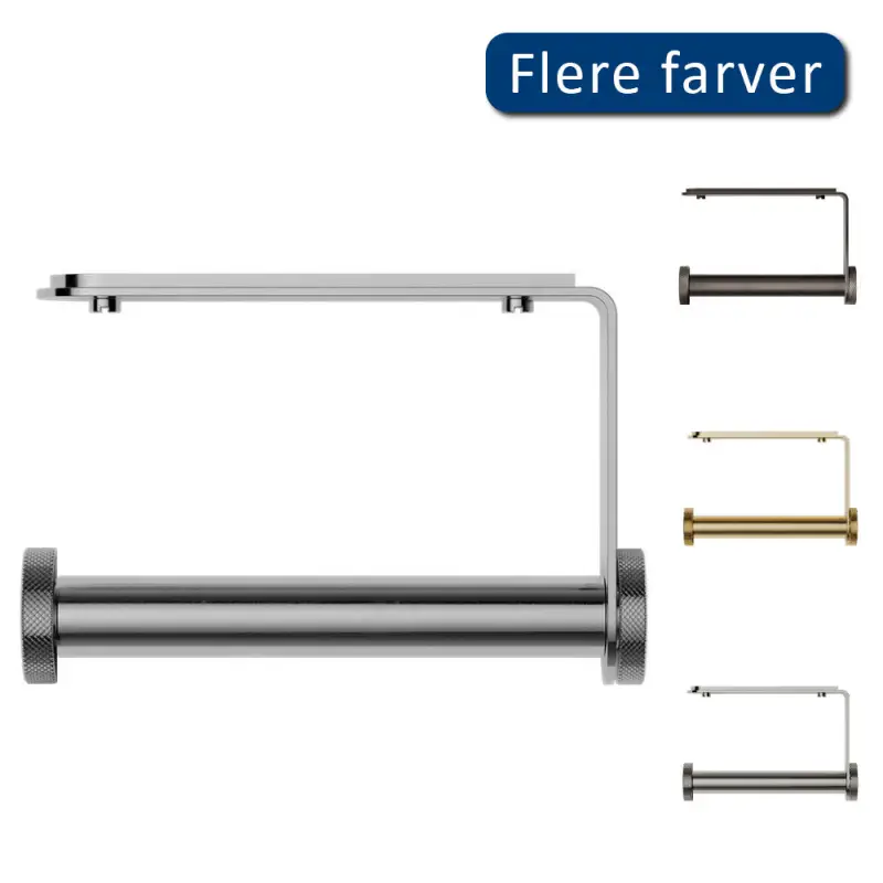 Krom giver toiletrulleholderen en blank og reflekterende finish, som fremhæver det tidløse formsprog. Overfladen er slidstærk, nem at vedligeholde og holder sit elegante udseende i mange år.