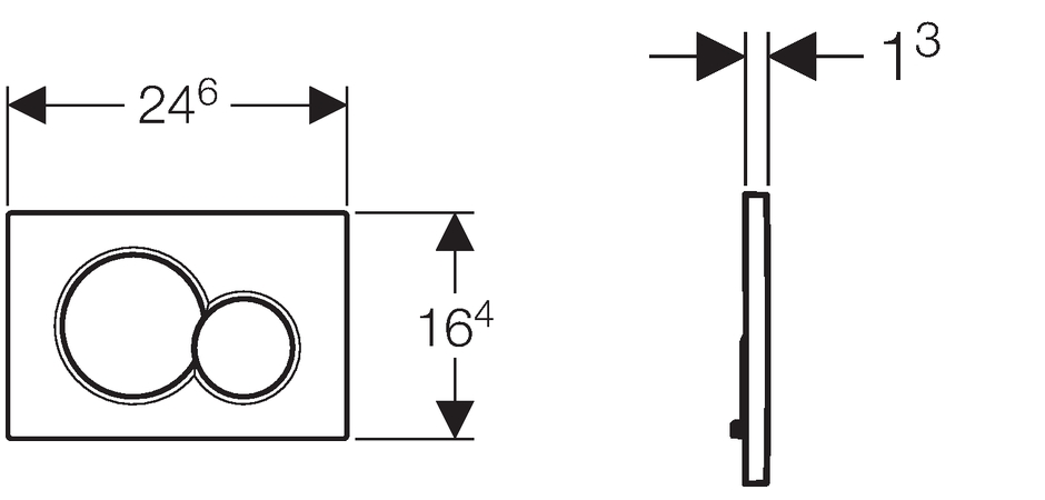 Pladen passer til Geberit Sigma 112 indbygningscisterner og er udstyret med en brugervenlig dobbeltskyl-funktion. Med et enkelt tryk på de runde knapper kan du vælge mellem stort eller lille skyl – en funktion, der både øger komforten og reducerer vandforbruget i hverdagen.