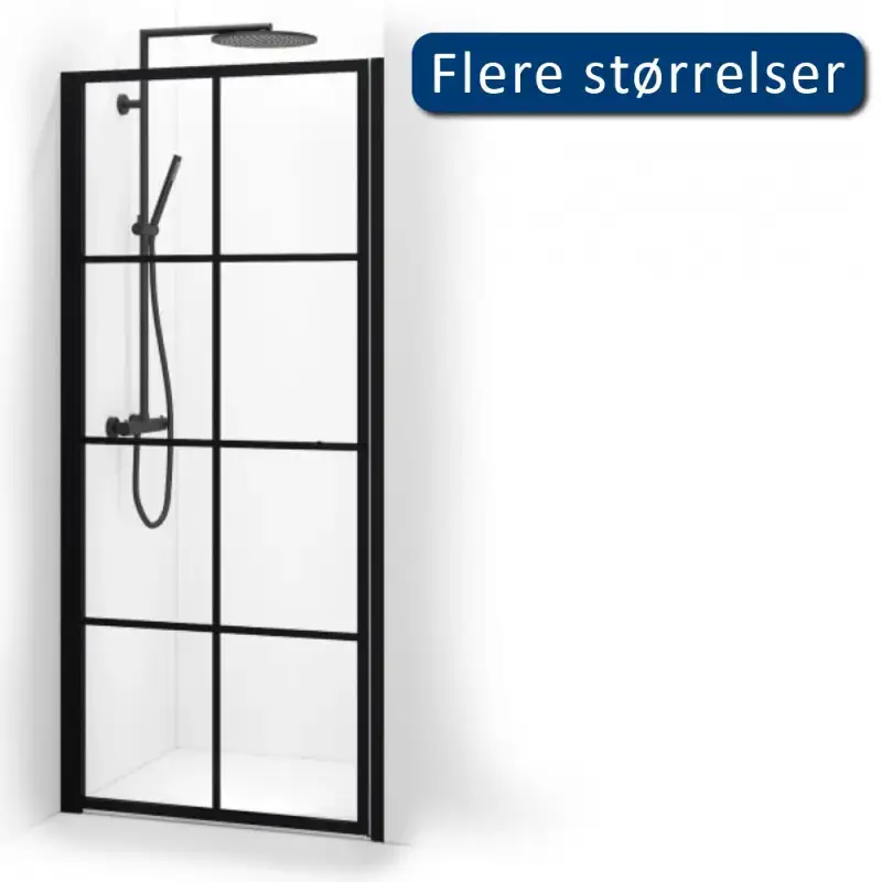 Brusedøren står knivskarp sammen med de flotte sorte brusesystemer