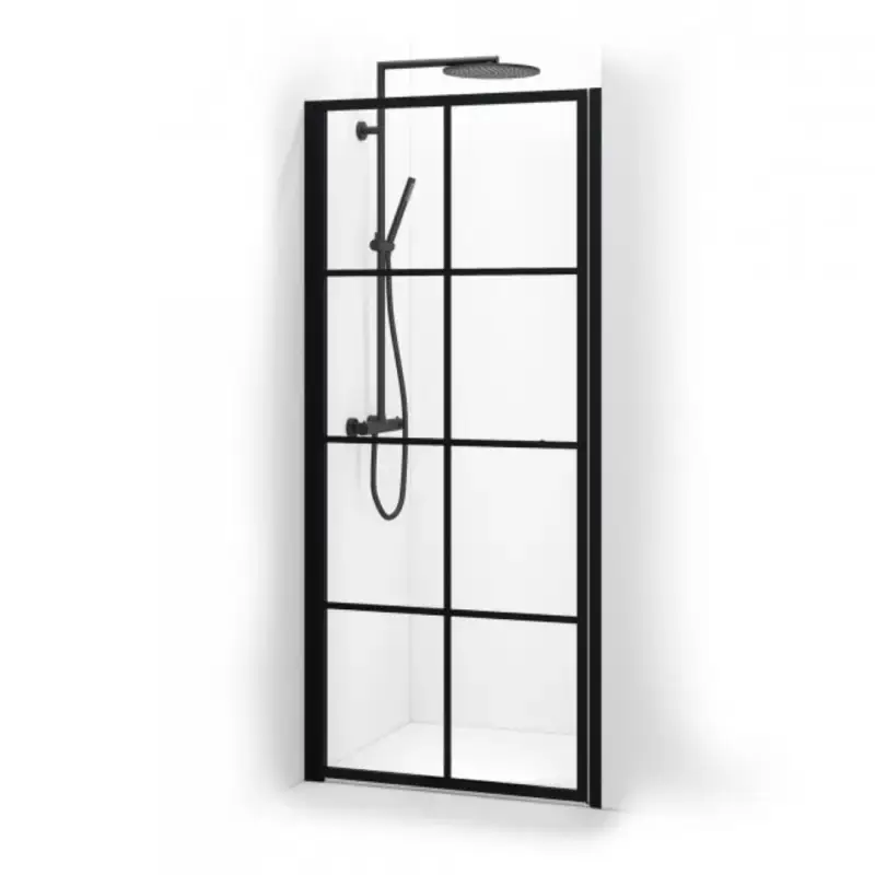 TopDesign Brusevæg i klar 8mm nano glas og sort rammeprofil - 80 x 200 cm