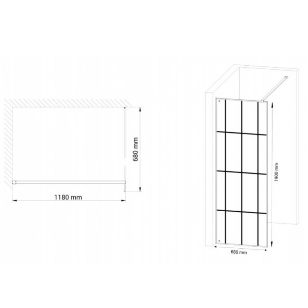 Nortiq New York brusevæg 70 cm i mat sort profil og sprosser