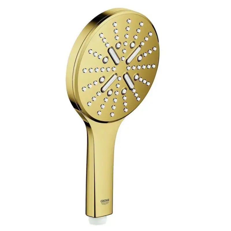 Grohe håndbruseren har en messing farvet overflade, med en poleret tekstur.