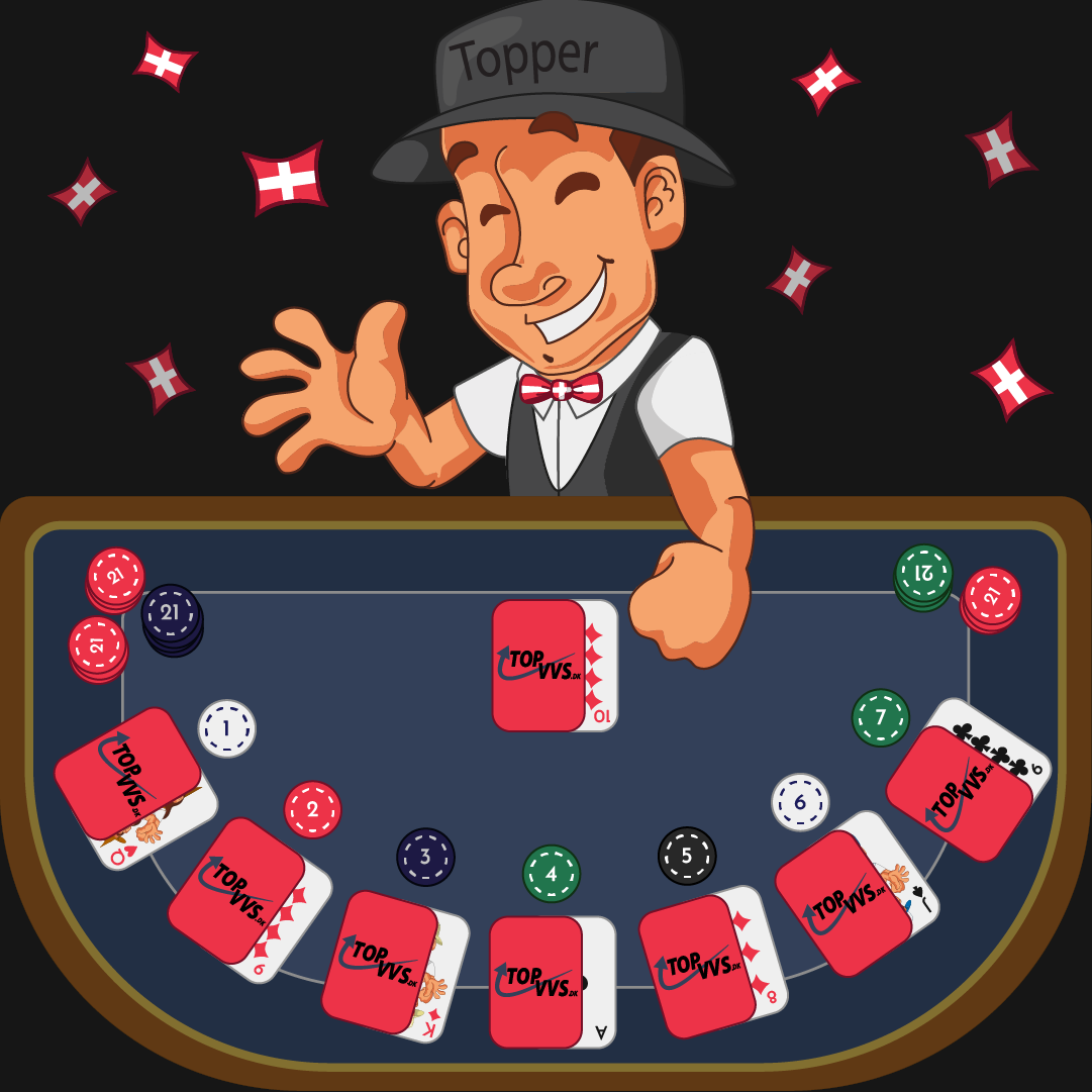 Den højste hånd man kan få i Blackjack er 21, får man over, dvs. 22+, taber man.