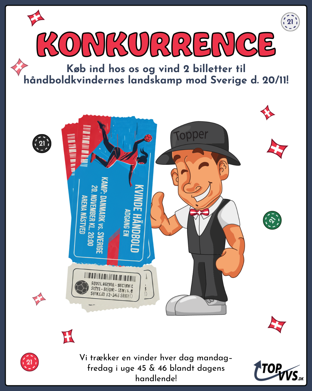 Vi vil hverdag i hverdagene i uge 45 og 46 trække lod om 2 billetter til Danmark vs. Sverige håndboldkampen d. 20 nov.
