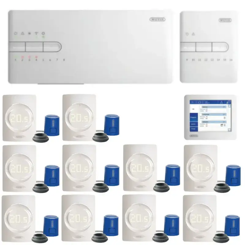 Hvis du for eksempel har 9 kredse, hvoraf 2 af dem er placeret i samme rum, kan du enkeltvist købe en pakke med 8 kredse og tilføje 1 separat telestat.