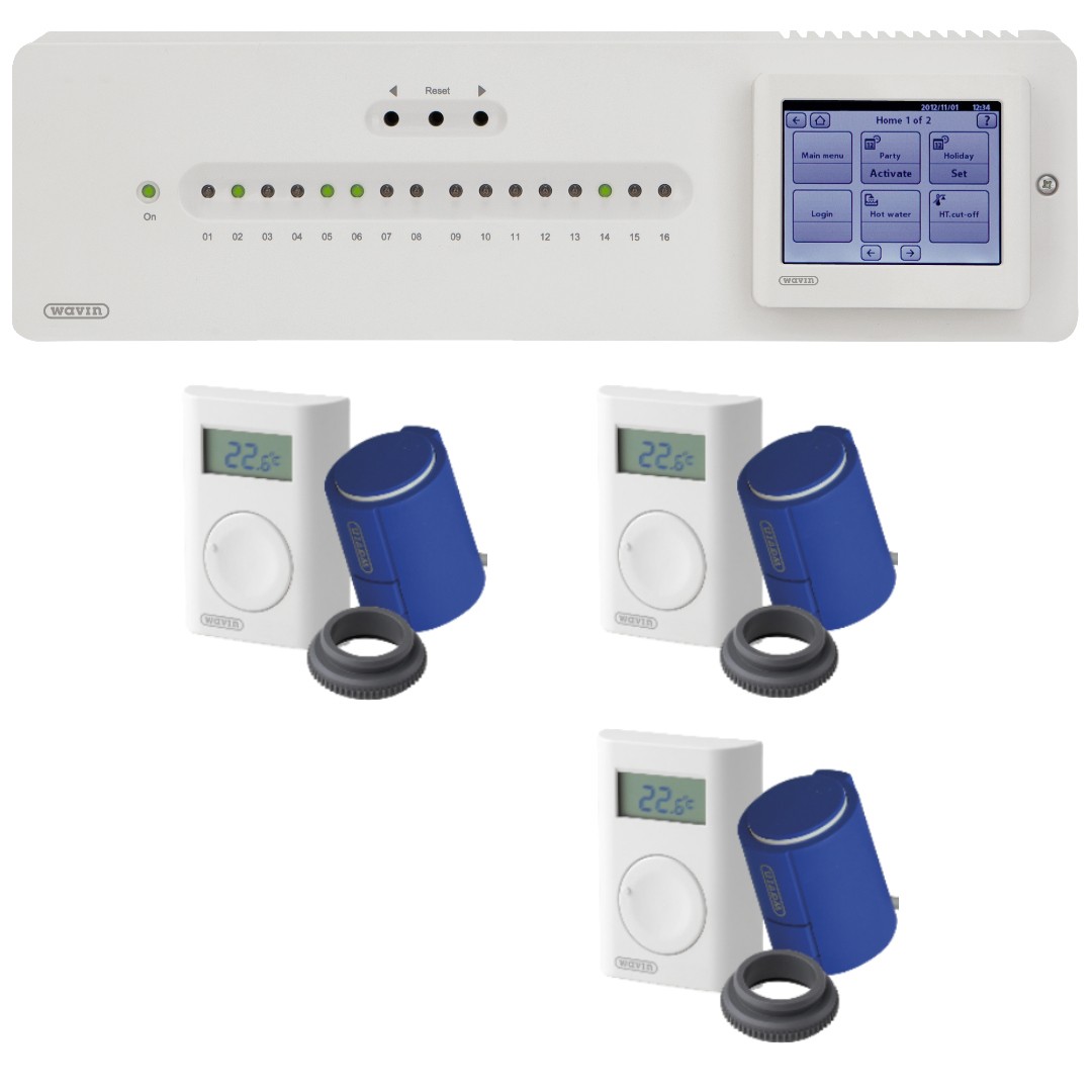 3 stk. trådløs Wavin AHC 9000 rumtermostat med digital display.