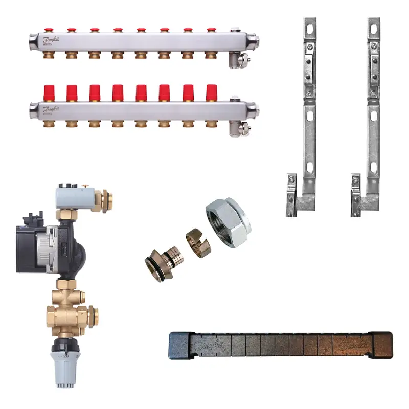 Denne 8-kredse gulvvarmepakke er ideel til boliger og bygninger med flere rum eller zoner, hvor der ønskes individuel styring og stabil varmefordeling. Systemet kan nemt kombineres med Danfoss Icon2 gulvvarmestyring for trådløs regulering og høj energieffektivitet.