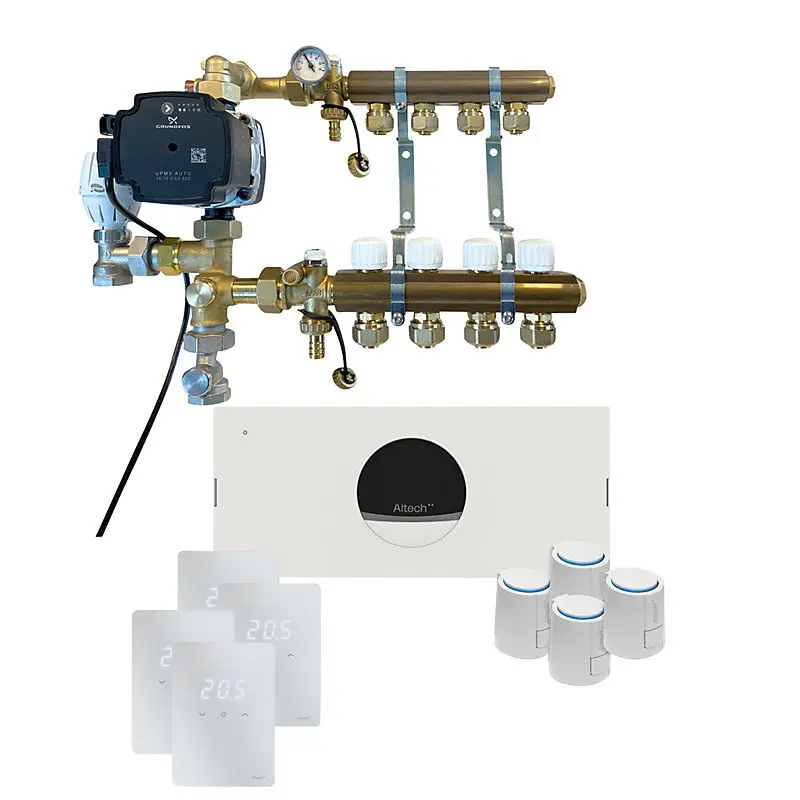 Altech Pro gulvvarmepakke til 4 kredse er en overskuelig og komplet løsning til dig, der ønsker en nem installation af gulvvarme. Her er de vigtigste komponenter samlet i én pakke, så du slipper for at sammensætte systemet selv og kan være sikker på, at delene passer sammen.