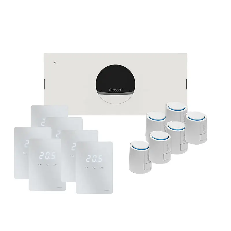Denne Altech Pro gulvvarmepakke til 6 kredse er udviklet til dig, der allerede har et Altech fordelerrør og ønsker at opgradere til en nyere og mere fleksibel styring. Med denne løsning kan du modernisere dit eksisterende gulvvarmeanlæg uden at udskifte hele installationen.