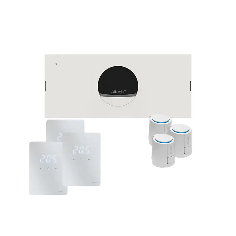 Denne Altech Pro gulvvarmepakke til 3 kredse er udviklet til dig, der allerede har et Altech fordelerrør og ønsker en opdateret løsning med moderne styring. Pakken gør det nemt at opgradere dit eksisterende gulvvarmeanlæg uden at udskifte hele installationen.