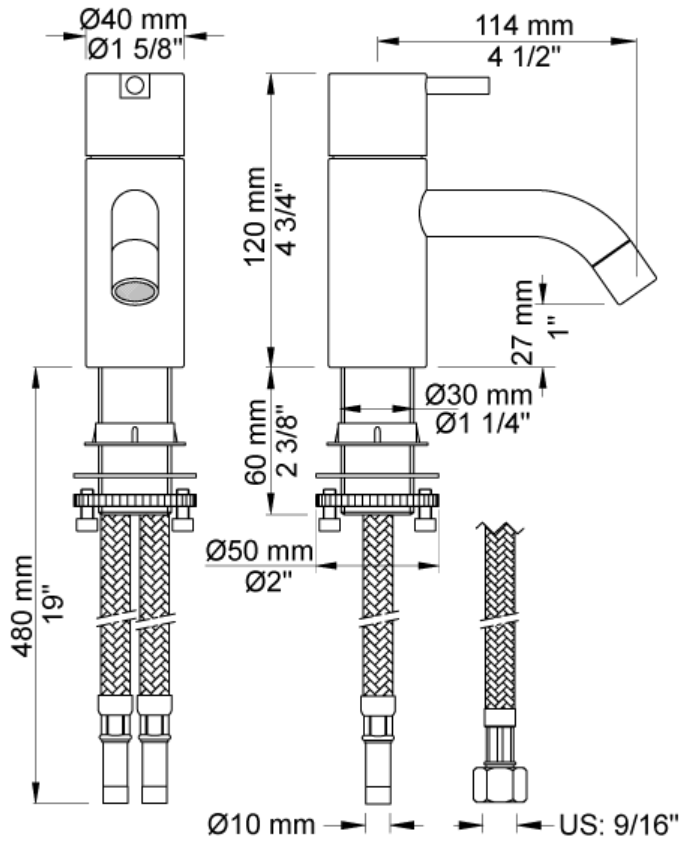 Armaturet monteres med Flexslanger med 10 mm studs - skal benyttes med 3/8" eller 1/2" omløber (pipefix) se relateret vare