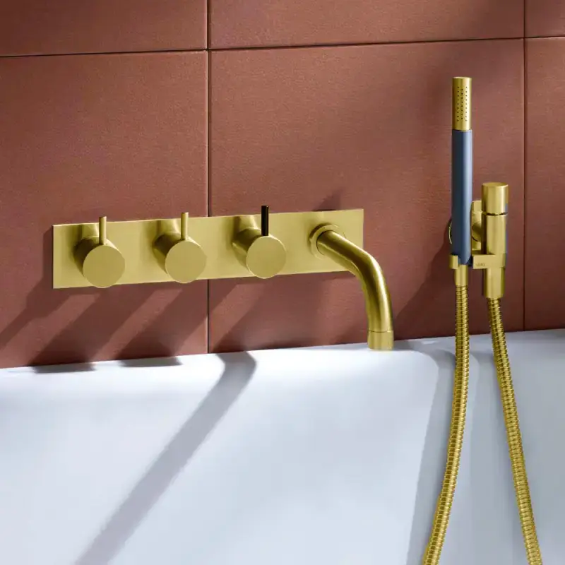 Vola 814C-071-19 Armatur til badekar med bagplade i poleret natur messing