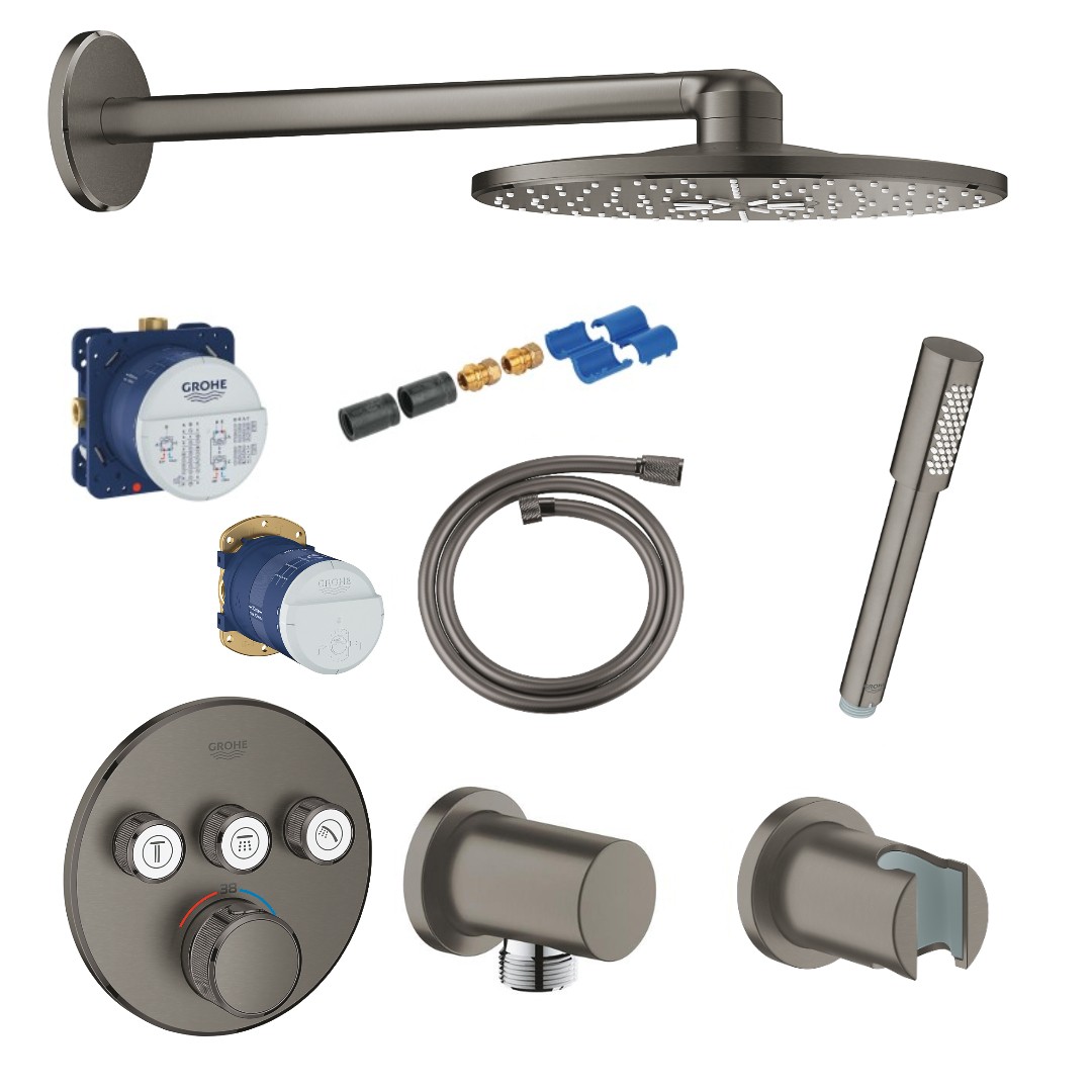 Grohe Grohtherm SmartControl termostatarmatur 3 ventiler til bruser, Børstet hard graphite 722686309