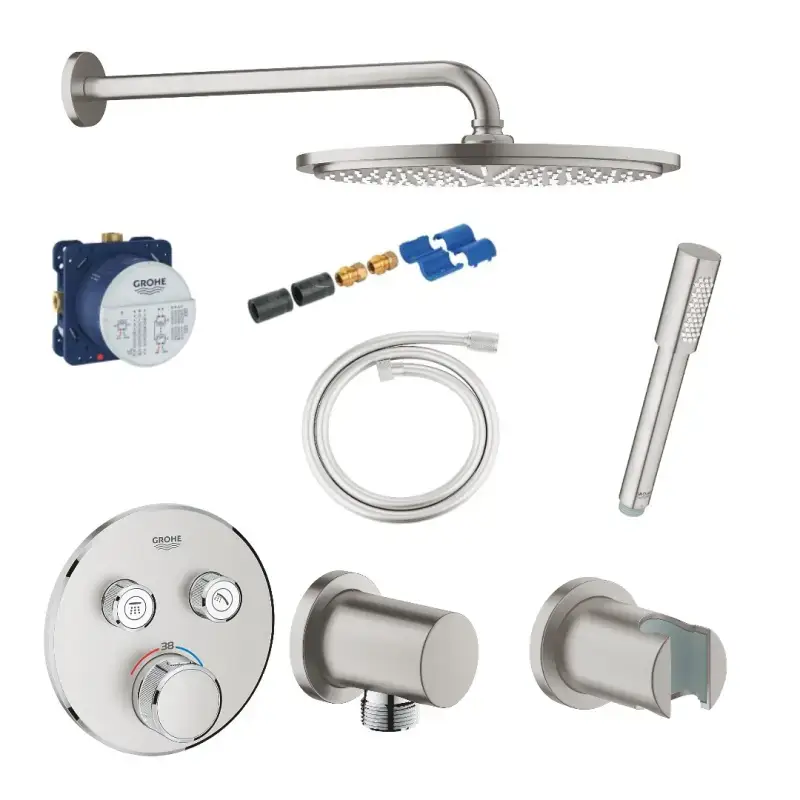 Grohe Grohtherm indbygningsarmatur supersteel - komplet pakke i rustfrit stål