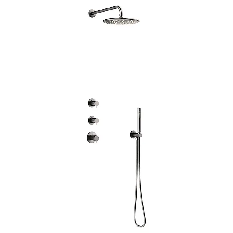 Brusesystemet er udstyret med tre intuitive greb – et til hver bruser og et til temperatur. Du kan bruge hoved- og håndbruseren samtidig, hvilket gør det perfekt til familier eller når du bare vil forkæle dig selv med ekstra komfort under badet.