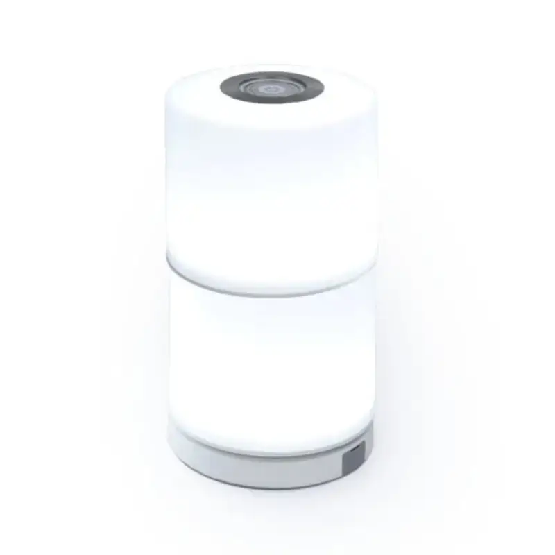 Du kan nemt justere lysstyrken og farven ved hjælp af lampens øverste knap, og batterierne kan oplades med det medfølgende USB-opladerkabel.
