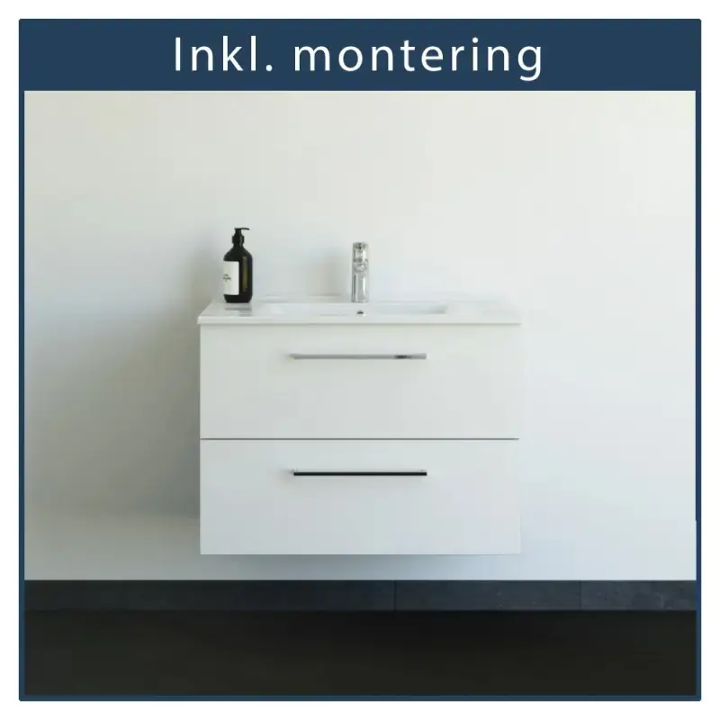 Inkl. montering, Danani Mido+ baderumsmøbel, 81 cm - hvid højglans