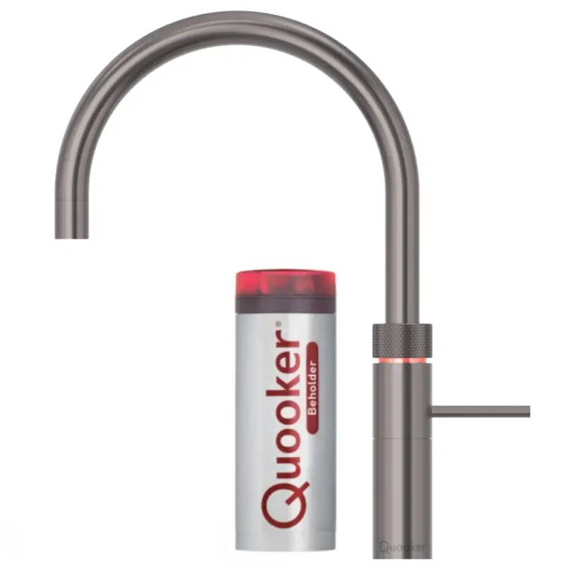 Quooker Fusion Round i gunmetal med Combi+ beholder er til dig, der ønsker et funktionelt armatur med et gennemført, mørkt udtryk. En komplet løsning, der sparer tid, plads og energi – og samtidig tilføjer køkkenet et eksklusivt præg.