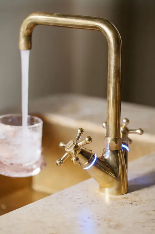 Toni Elements Christiansborg 1-huls U200 i Massiv bruneret messing er en kogende vandhane, hvor de ikoniske stjernegreb møder avanceret funktionalitet. Armaturet giver dig fire funktioner i ét: koldt, varmt, filtreret og 100°C kogende vand direkte fra hanen. Den kantede U200-tud er svingbar og skaber god plads ved køkkenvasken – praktisk til både madlavning og rengøring.