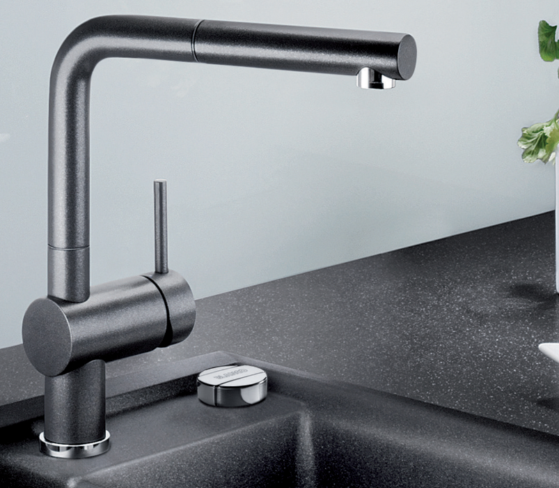 Blanco Linus-S i farven antracit er skabt til dig, der ønsker et stilfuldt og funktionelt køkkenarmatur med et moderne udtryk. Den robuste overflade i Silgranit-look matcher perfekt med BLANCOs antracitfarvede vaske og skaber et harmonisk, ensartet design. Den høje L-formede tud kan trækkes ud og er udstyret med brusestråle – ideel til både opvask, skylning og madlavning.