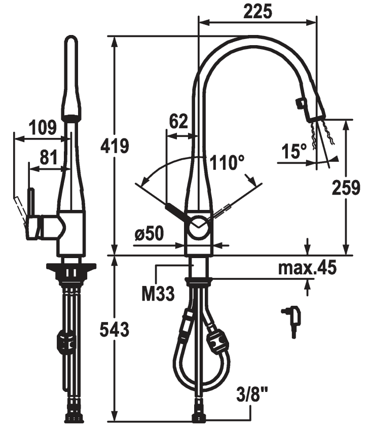 køkkenbatteriet monteres let med de bløde fleksible tilslutningsslanger med 3/8" gevind.