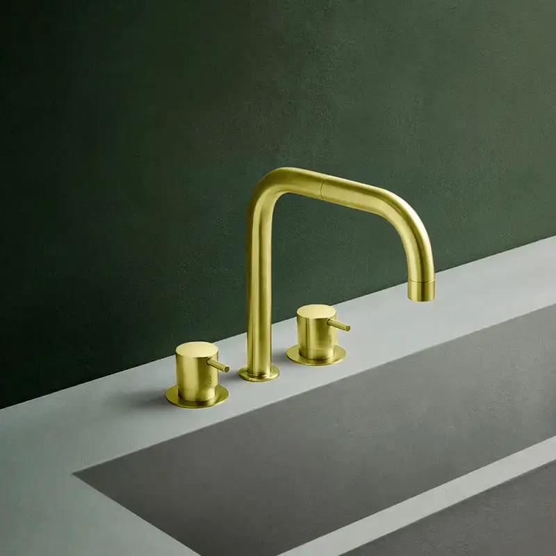 Klassisk køkken armatur i flot messing finish der patinere med tiden.
