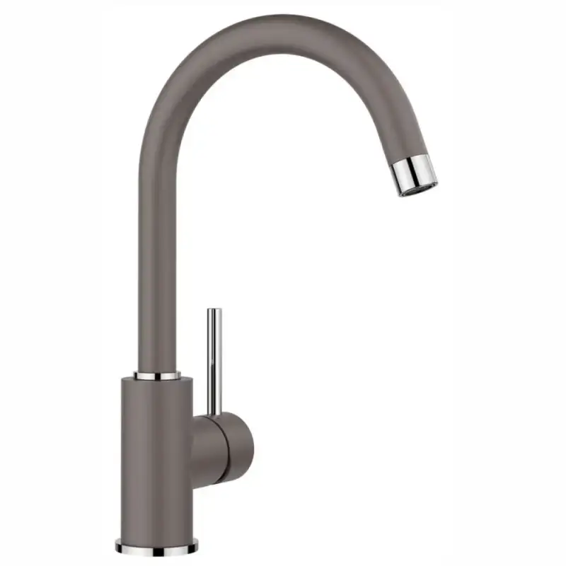 Blanco MIDA i farven vulkangrå er et stilrent og pladsbesparende køkkenarmatur med et moderne buet design. Den høje tud gør det nemt at fylde kander, gryder og vaser, mens 360° svingradius giver dig stor fleksibilitet – også i små køkkener. Overfladen i Silgranit-look matcher BLANCOs vaske i vulkangrå og skaber et smukt og ensartet udtryk.