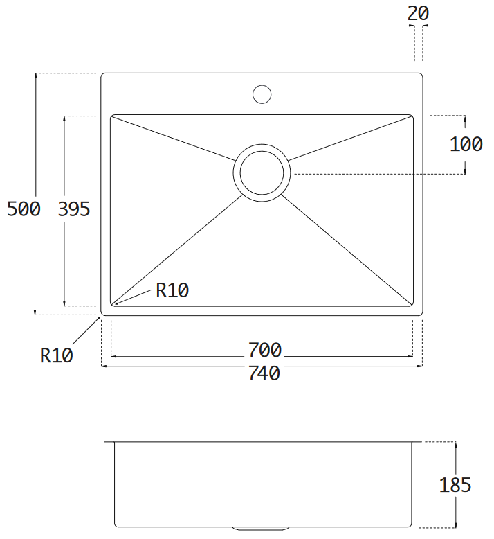 Vasken er lavet i 1,2 mm rustfrit stål som sikre vasken er meget stabil.