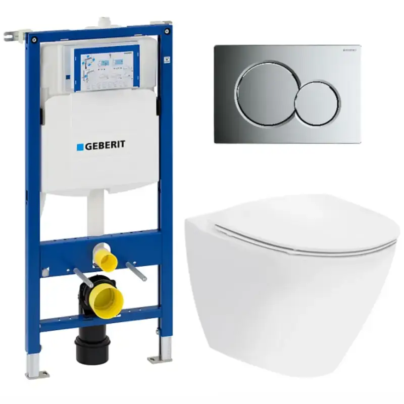 Toiletpakke m/Geberit cisterne, Ifø Sign toilet m/sæde, og blankkrom/matkrom trykplade