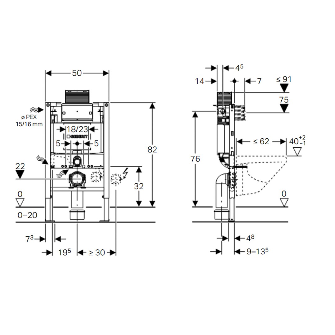 Pakken indeholder alle de nødvendige dele for installation af toilettet.