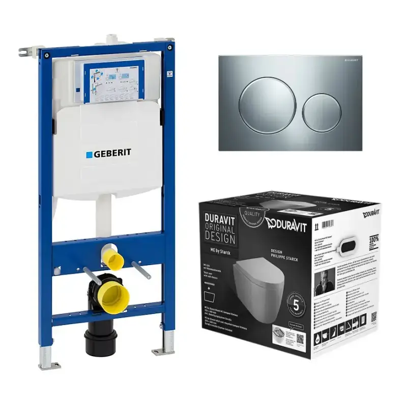 Toiletpakke m/Geberit cisterne, Ifø Sign toilet m/sæde, og blankkrom/matkrom trykplade