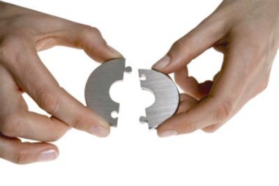 Click One Two rosetter, af massivt børstet rustfrit stål (AISI 304). Består af 2 dele, som klikkes på uden brug af værktøj. Ved montering på væg eller loft kan rosetterne fikseres med lim eller dobbeltklæbende tape.