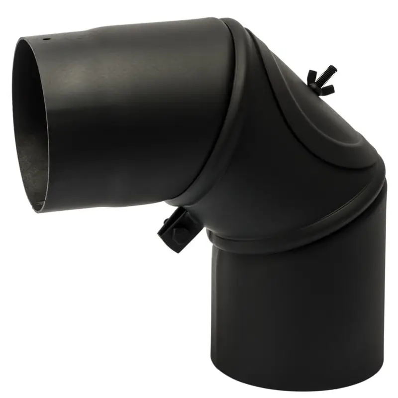 150 mm Metalbestos knærør 90° med smig, med renseklap