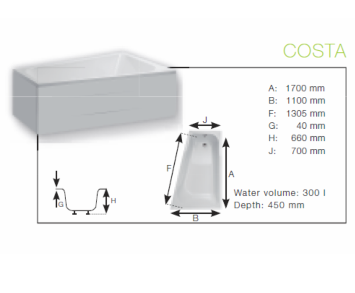 Danline Costa sølv-pakke (Højrevendt) 1700 x 1100 mm