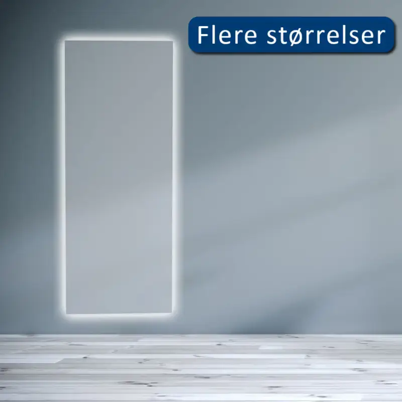 Dette praktiske spejl har LED backlight lys der kaster lys op mod bagvæggen.