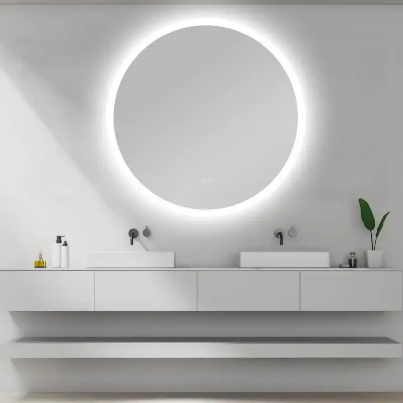 Spejlet leveres med antidug funktion der tændes og slukkes på spejlet - på den måde slipper du for dug på spejlet efter et varmt bad.