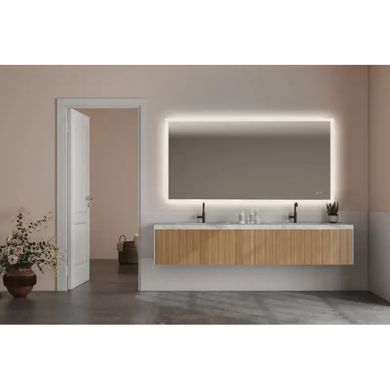 Glem alt om dug på spejlet efter din morgenbruser! Vores spejl er designet med indbygget varme, der forhindrer dugdannelse og sikrer, at du altid kan nyde et klart billede uden besvær.