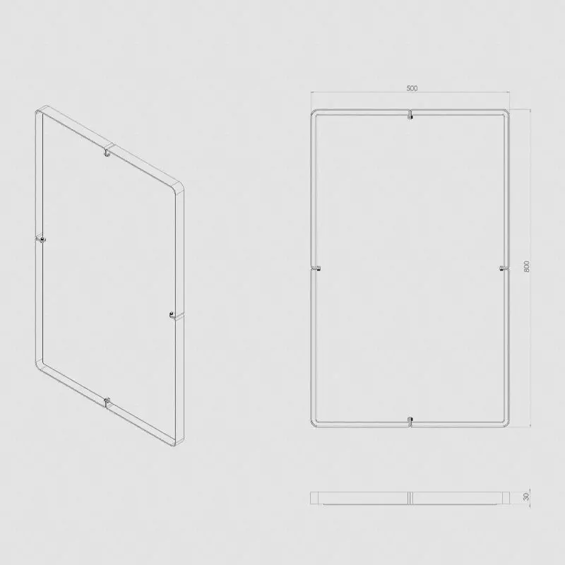 - Svævende udtryk med smalt mellemrum mellem ramme og spejl