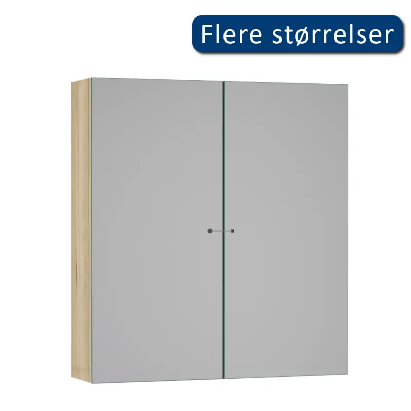 Et elegant og funktionelt spejlskab i varm Halifax Eg finish, designet til at give ekstra opbevaringsplads i badeværelset uden at optage unødig visuel plads. Med en bredde på 60 cm kombinerer dette spejlskab både spejlflade og praktisk opbevaring, så du får en gennemtænkt løsning til hverdagens behov.