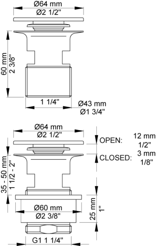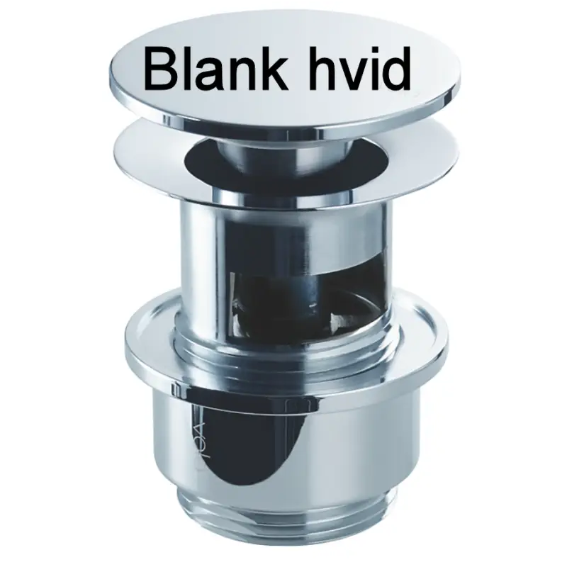 Den del af bundventilen, der monteres gennem vasken, leveres i krom