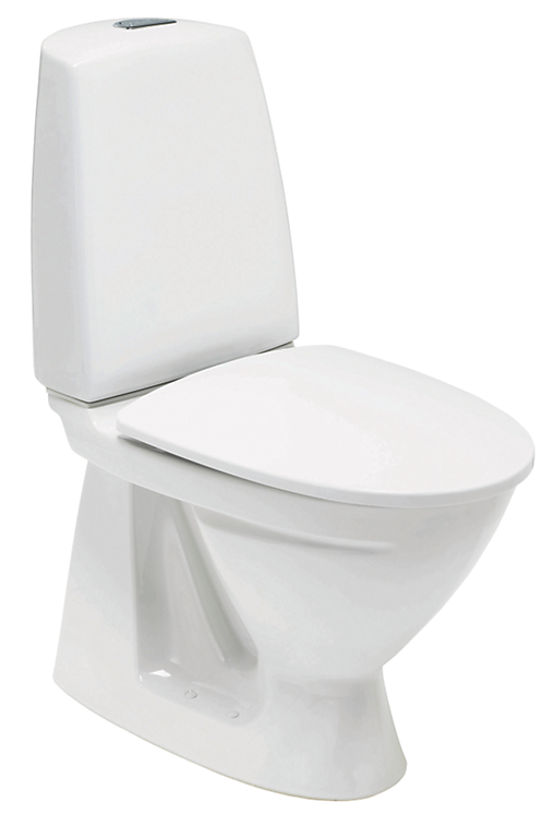 Toilet med hel cisternekappe for nemmere rengøring og Fresh WC, hygiejnisk doseringsløsning i skylleknappen, som standard.
